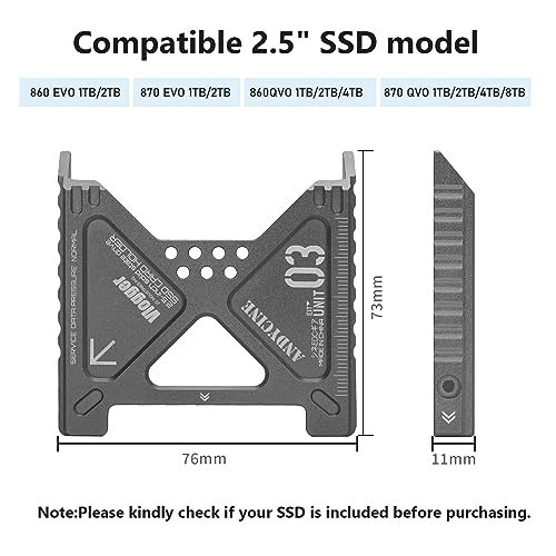 Il supporto per SSD in alluminio con un peso di soli 28 g attaccherà il tuo 860&870 EVO/QVO saldamente e stabile sul tuo Atomos ninja v,ninja v+. Lo spessore dell'SSD da 2,5 pollici dovrebbe essere inferiore a 6,7 mm. Altri SSD con uno spessore superiore a 6,7 mm non si adattano al lunchbox III.