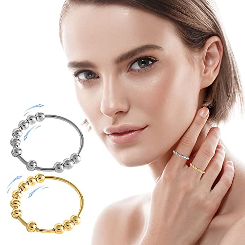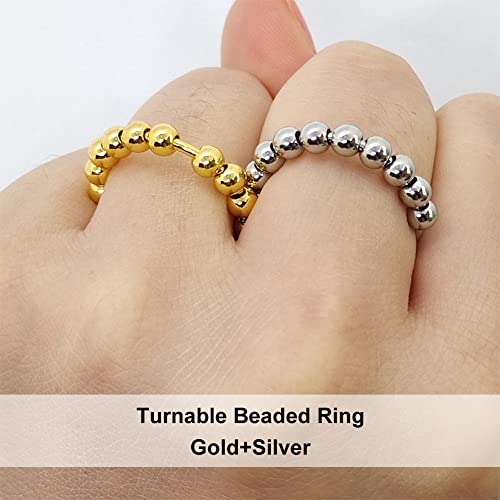 Anelli di Ansia Agitato, Anelli Spinner, Anelli Fidget, Anello di Perline Spinner, Anello Antistress, Anelli Sottili Regolabili Impilabili per Donna Ragazze, Argento+Oro
