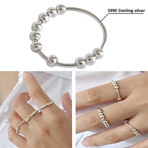 Anelli Ansia Donne, Anelli Argento Sterling S990, Anello Perline Argento Sterling, Strumenti Decompressione, per Uomini Donne Regali di Gioielli con Anelli In Argento Sterling, Diametro 52 mm, argento