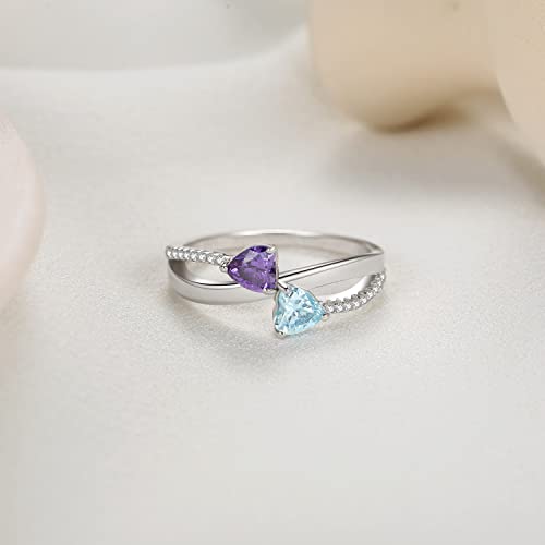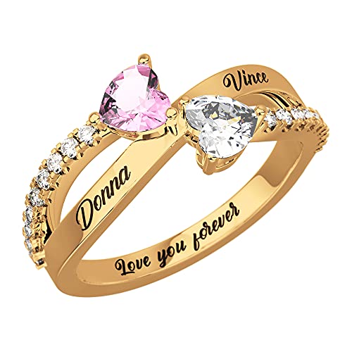 Anelli d'argento personalizzati con 2 nomi Anello Criss Cross X personalizzato per le donne inciso due pietre di nascita doppio cuore migliore amico amicizia coppia regali pietra di nascita gioielli