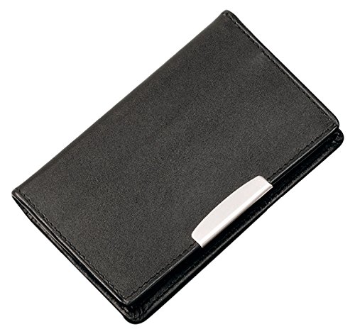 Cescahide-Raccoglitore ad anelli per biglietti da visita, in pelle, a portafoglio, colore: nero