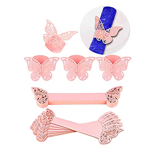 100 anelli di carta con farfalla, taglio laser 3D, per matrimoni, cene, feste, tovaglioli, festival, anniversari, ristoranti, colore: rosa