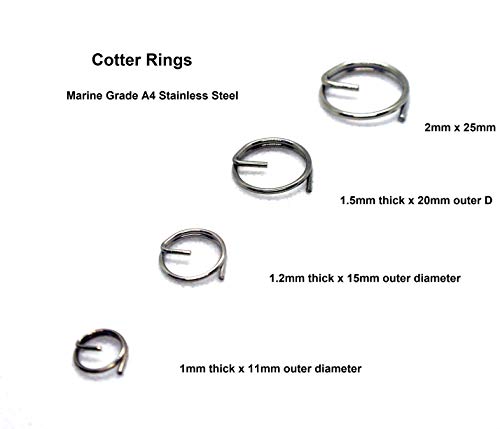 5 x anelli per coppiglia in acciaio inox 316 (spessore 1 mm x esterno 11 mm D)