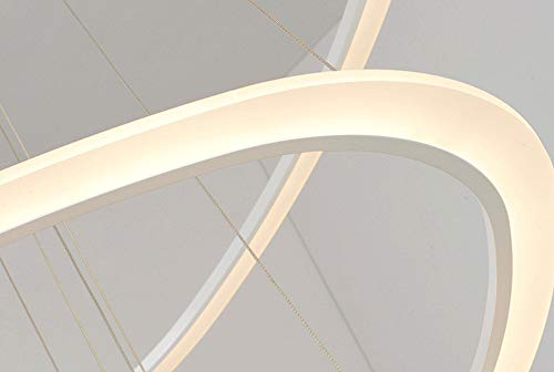Tre anelli dimmerabile Lampada a sospensione Soggiorno Sala da pranzo luce a sospensione moderno bianco Lampadario semplice Decorazione con telecomando Acrilico Ombra Ø25 + 43 + 64cm 68W