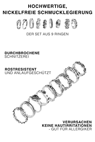 ✅ Il set è composto da 9 diversi anelli. Gli anelli sono lavorati in modo magistrale e decorati con intaglio fisico. Due anelli sono regolabili