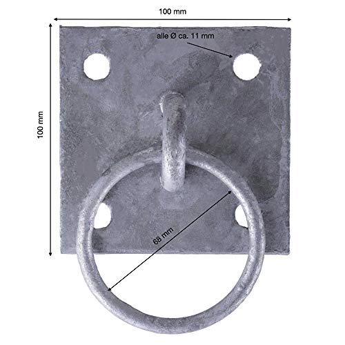 2 x anelli di fissaggio Ø 68 mm con piastra ad occhiello quadrata 100 x 100 mm zincati