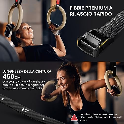 ✅,: grazie alla nostra cinghia premium con lunghezza 4,5 m, larghezza a 3,8 cm e pratiche tacche di demarcazione sarà possibile regolare l'altezza dei tuoi anelli in modo semplice e rapido.