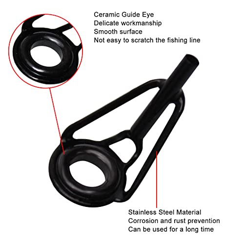 Anelli di guida per canne da pesca E' realizzato in acciaio inox e ceramica di alta qualità, robusto e duraturo, anticorrosivo e antiruggine e antiossidante. Anelli Solidi da Pesca è realizzato in acciaio al carbonio di alta qualità, con una lunghezza di 33 mm e una forza di trazione di 30 kg.