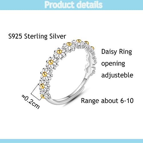 Materiale durevole: anello con margherita in argento sterling S925 ecologico, dimensioni regolabili, mantenimento del colore della superficie di lunga durata, non sbiadisce facilmente, antiossidante, antiallergico. L'anello a margherita è perfetto per donne, ragazze, può essere indossato da solo o impilato. L'anello Daisy non è adatto solo per l'uso quotidiano, ma anche per l'uso in qualsiasi occasione come l'ufficio.