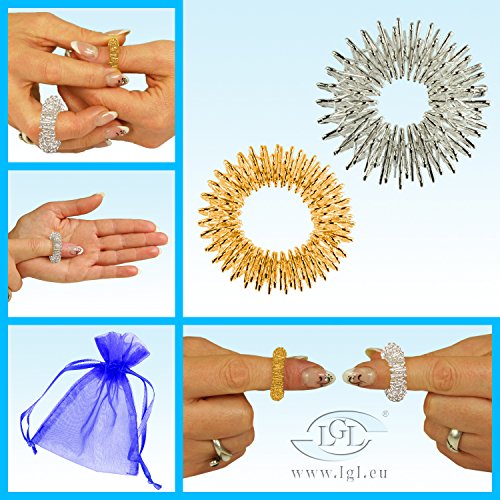 2 x 2 anelli per massaggio dita, digitopressione, grande e piccolo, oro e argento