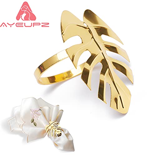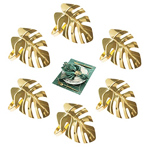 ANELLI PORTATOVAGLIOLI SET — Bella forma fatta di foglie d'oro. Il portatovagliolo utilizza foglie tropicali come decorazione che può aggiungere un sapore esotico al tuo tavolo da pranzo.
