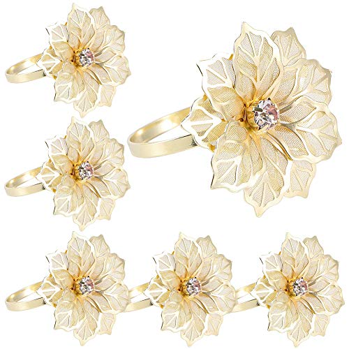 Anelli portatovaglioli,QSXX 6 Pezzi Floreale Porta Tovaglioli Anelli,Scava Fuori Fiore Anelli di Tovagliolo in Rame per Hotel,Ristorante,Banchetti di Nozze,Decorazione per la Festa di Natale,Oro