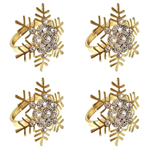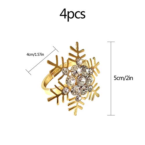 Anelli portatovagliolo fiocco di neve 4Pz Anelli di tovagliolo in lega di Natale con anelli di tovagliolo di strass scavati Ornamento Squisiti tovaglioli di famiglia Set di anelli decorazioni Gold