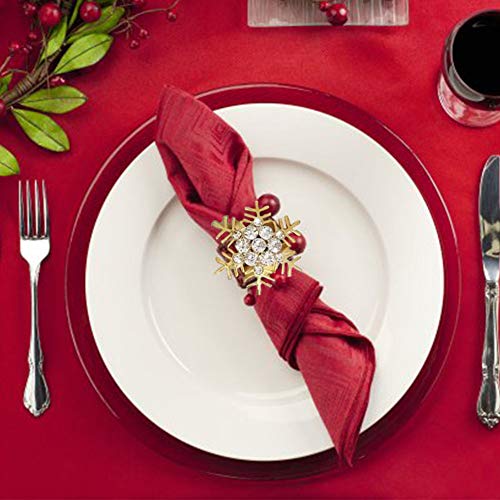 【Lavorazione squisita】 questi porta tovaglioli natalizi con fiocchi di neve sono realizzati in lega e strass sintetico, robusti e resistenti, leggeri e delicati, galvanizzati con colore oro / argento, non facili da deformare. Set di accessori per la decorazione della tavola di casa
