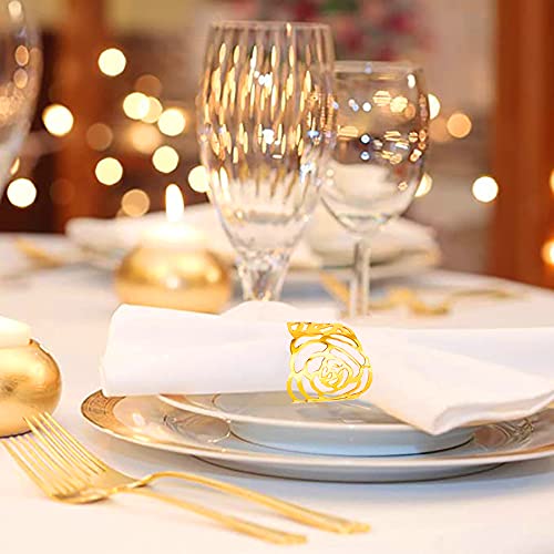 【ANELLI PER TOVAGLIOLI CON FIORI ELEGANTI E SQUISITI】: realizzati in lega di metallo resistente con finitura placcata in metallo dorato per una lucentezza duratura e una facile manutenzione.Crea facilmente un aspetto bello e attraente per il normale tovagliolo e posate.