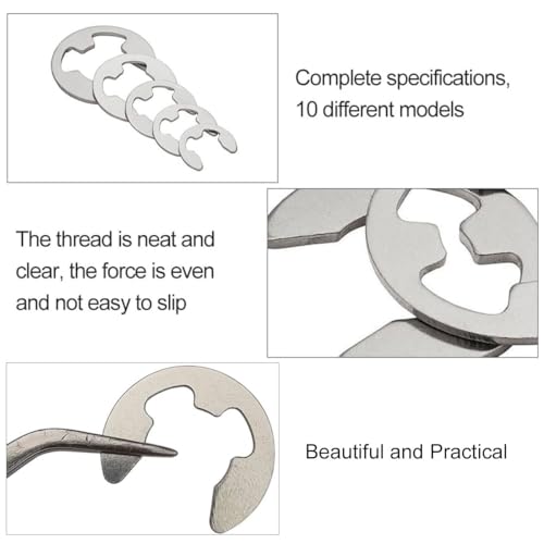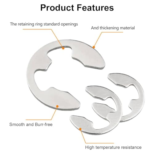 Anelli Di Sicurezza Interni: Realizzato in resistente acciaio inossidabile trattato termicamente, questo anello di bloccaggio esterno E-clip presenta una maggiore resistenza alla trazione, eccellente resistenza alla ruggine e all'olio e tiene saldamente senza piegarsi o deformarsi.