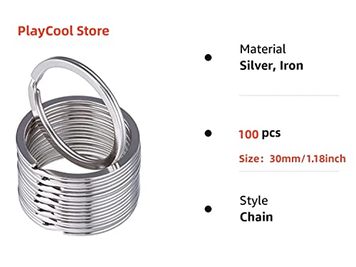Anelli a spirale piatti in metallo, per tenere unite le chiavi di casa e dell'auto, diametro: 25 o 30 mm, colore: argento, 100 pezzi., 30 mm