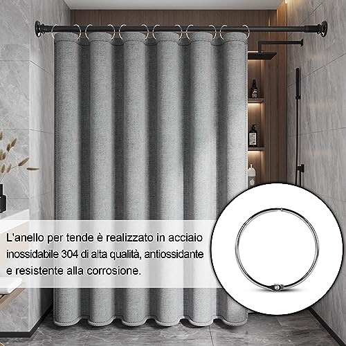 【Antiruggine e Durevoli】 Gli anelli per tende si caratterizzano per la loro resistenza all'ossidazione e alla corrosione, grazie al materiale in acciaio inossidabile 304 di alta qualità. Questa caratteristica li rende perfetti per ambienti umidi come il bagno.