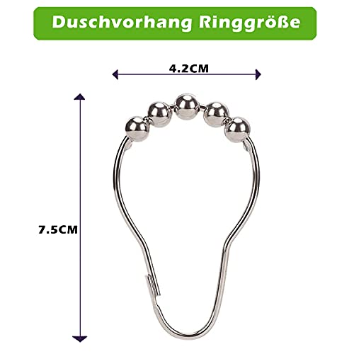 24 Anelli per Tende da Doccia, Materiale in Acciaio Inossidabile, Gancio per Tenda da Doccia con Sistema a carrucola, Anello per Doccia in Argento, utilizzato in bagni, finestre