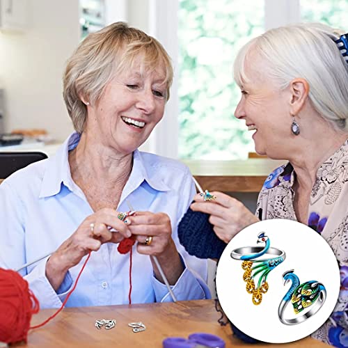 Anelli All'uncinetto in Metallo, 2 Pezzi Accessori per Maglieria ad Anello,Ditale per lavori a Maglia,Regolabile Intrecciato Guida,Anello da Dito Aperto Pavone,per Una Lavorazione a Maglia più Veloce