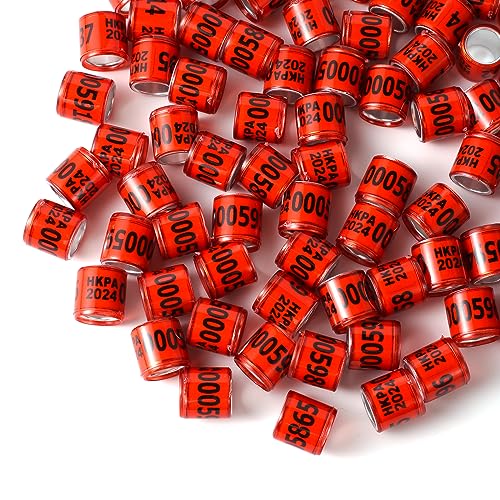 100 anelli per zampe di colomba in alluminio, multicolore, in plastica, con 2024 HKPA