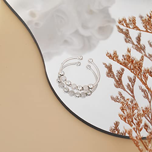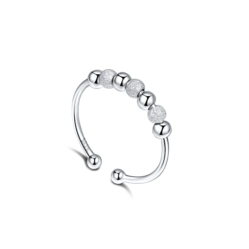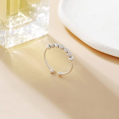 Anello d'ansia in argento Anello in argento sterling 925 regolabile Spinner Bead Anello di agitazione Anello antistress Gioielli regalo per le donne