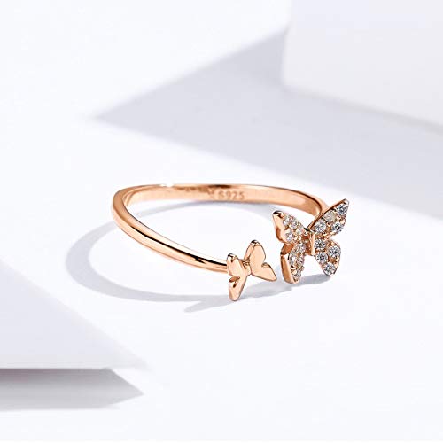 Materiale: grazioso anello a farfalla realizzato in argento Sterling 925. Placcato oro rosa. Senza nichel, piombo, cadmio e ipoallergenico, 100% sicuro per le pelli sensibili.
