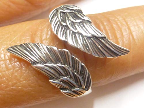 Anello in argento, anello aperto con ali d'angelo, in argento Sterling, misura 62-19,7