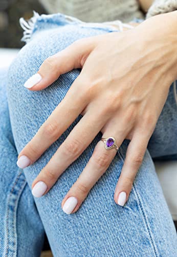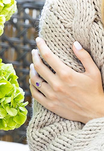 Anello argento 925 con pietre preziose ametista pietra viola argento sterling da donna in vero argento (MRG-113-51-(56))