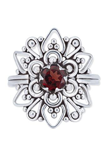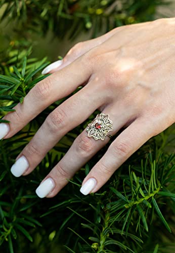 Anello argento 925 con pietre preziose granato pietra rossa argento sterling da donna in vero argento (MRG-174-52-(60))
