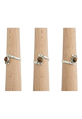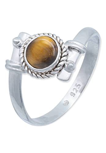 Anello argento 925 con pietre preziose Occhio di tigre pietra marrone argento sterling da donna in vero argento (MRG-085-18-(50))