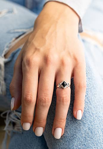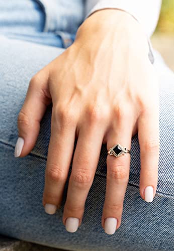Anello argento 925 con pietre preziose Onice pietra nero argento sterling da donna in vero argento (MRG-189-03-(50))