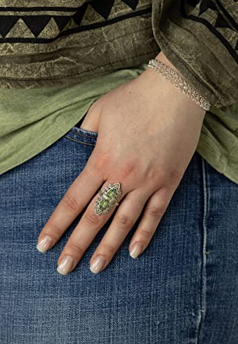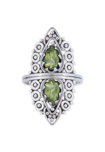 Anello argento 925 con pietre preziose peridoto pietra verde argento sterling da donna in vero argento (MRG-172-59-(56))