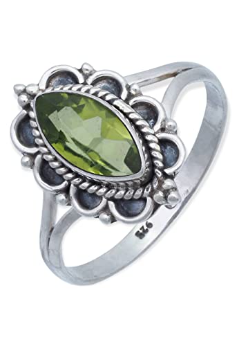 Anello argento 925 con pietre preziose peridoto pietra verde argento sterling da donna in vero argento (MRG-152-59-(60))