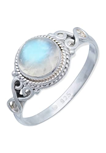 Anello argento 925 con pietre preziose pietra di luna pietra bianco argento sterling da donna in vero argento (MRG-024-04-(52))