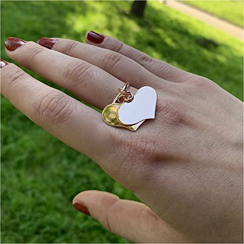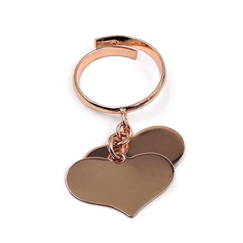 Anello in Argento 925 Placcato Oro Rosa con Due Ciondoli Pendenti a forma di Cuore Personalizzabili con Incisione Gratuita Argento