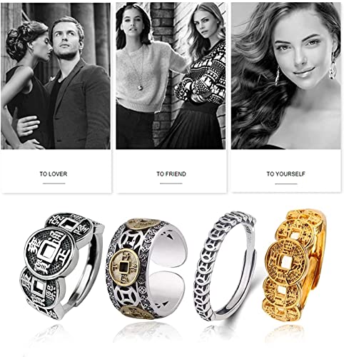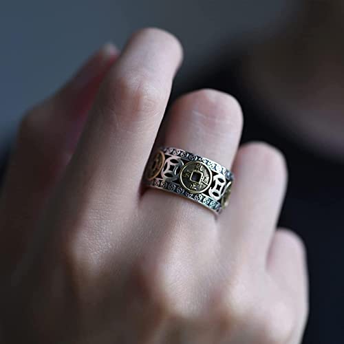 【Regalo Per Lui】 Questo è Un Anello Fortunato Con Monete Cinesi In Argento Sterling S925, Puoi Indossarlo Da Solo, Raccoglierlo O Regalarlo. Adatto A Natale, Compleanno, Halloween, Anniversario, Laurea O San Valentino, Festa Della Mamma, Festa Del Papà, Giorno Di Pasqua E Così Via Qualsiasi Regalo Del Festival. Significa Fortuna, Buona Fortuna, Pace E Buona Fortuna.