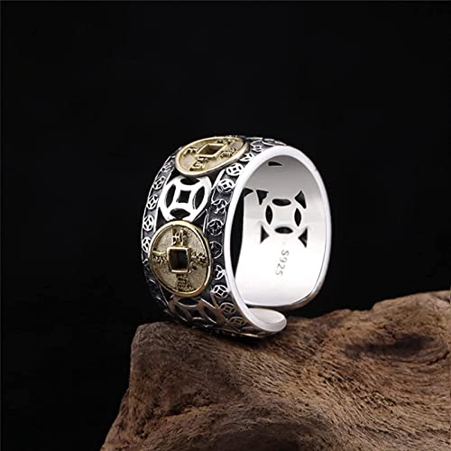 Anello di Buon Auspicio con Moneta da Cinque Imperatori,【Nuovo】 S925 Sterling Silver Unisex Attira Denaro Ricco E Anello di Buona Fortuna,Il Regalo Migliore E più Cool A