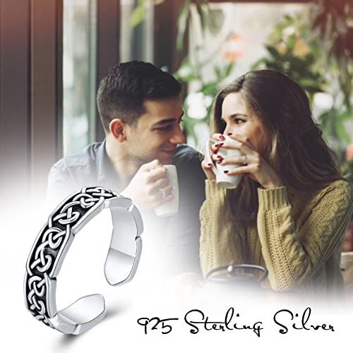 Anello celtico da uomo in argento sterling 925 Anelli aperti regolabili con nodo celtico Anelli punk vintage da donna Anello da dito Gioielli Regali di San Valentino per ragazze Donne Bambini