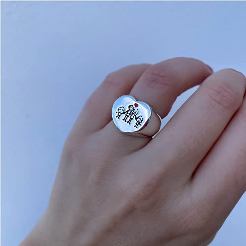 Questo gioiello è dedicato alla famiglia. L'anello in argento sterling 925 ha la forma di un cuore su cui è incisa una famiglia composta da mamma, papà e due figli maschi