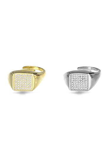 Anello Chevalier da Mignolo in Argento 925% Regolabile Quadrato Zirconato - Anello con Zirconi Donna e Ragazza (Argento)