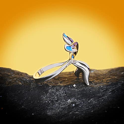 Anello da Donna in Argento 925 Anello A Coda di Sirena Blu Anello Epossidico Anello A Farfalla Smaltato Fatto A Mano Anelli da Donna di Gioielleria Raffinata