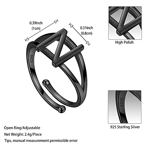 Anello da donna con lettera iniziale personalizzata, anello per feste, in argento Sterling 925, placcato oro nero, 18 carati, regolabile, con lettera dalla A alla Z, anello da donna, Argento, Zirconia