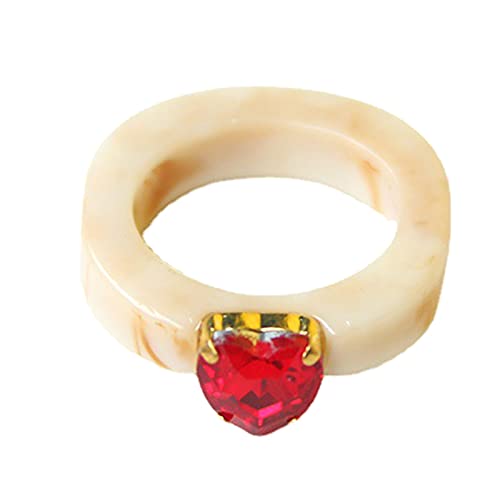 XPT Anello da Donna Anello Tondo in Resina Color Caramella con Strass A Forma di Cuore per Anelli di Fidanzamento Bianca