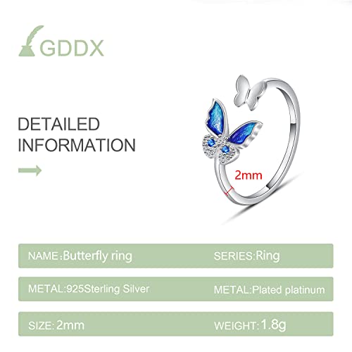 Anello farfalla abbraccio gatto gufo serpente Anello vintage croce gotico regolabile in argento sterling 925 per donna uomo (anello a farfalla blu)