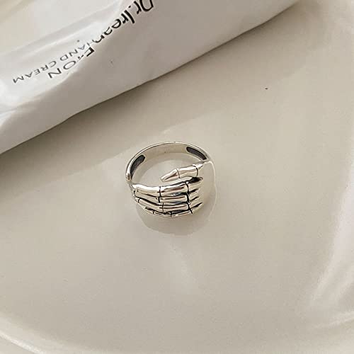 Anello a Fascia Aperta In Argento Sterling Con Teschio Vintage Per Donne Ragazze Uomini Regolabile Ossidato Scheletro Gotico Artigli Del Diavolo Piccola Coda Da Dito Anelli Unisex Gioielli Compleanno