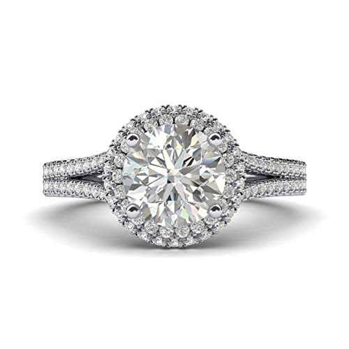 Anello di fidanzamento da donna in argento Sterling massiccio da 2,0 ctw con diamante rotondo e doppio gambo spaccato e Argento, 59 (18.8), colore: Argento, cod. EN-HS01-925