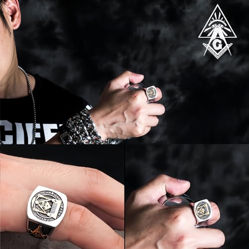 Anello massonico Piazza G e pilastri in Acciaio Titanio Tono d'oro per Uomo Donna Taglia 14