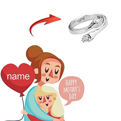 Anello personalizzato con nome abbraccio Anello con nome personalizzato in argento sterling Anello con nome per la festa della mamma Coppie Anello gioielli con confezione regalo
