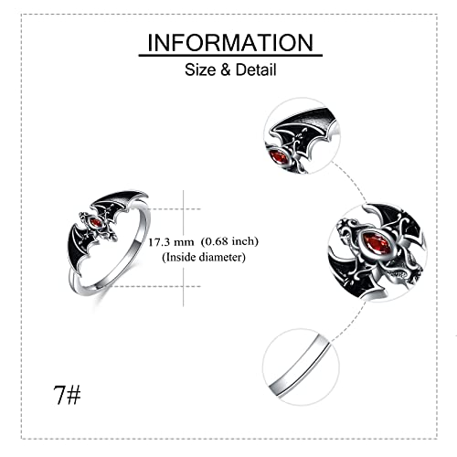YFN Anello Pipistrello Argento Sterling Anello Gotico Gioielli Gotico Regalo per Donna Uomo Ragazze (Ring)